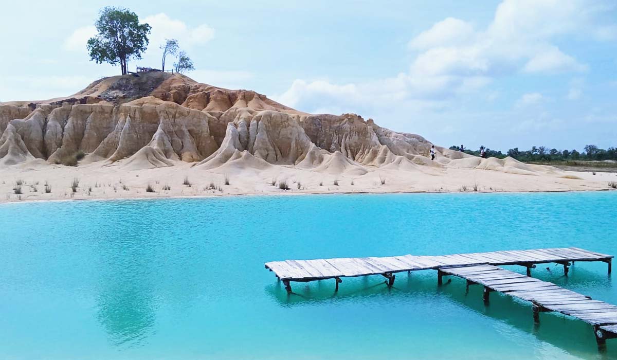 Not far from white sand dunes there is Clear lagon or named blue lake it was also abandond sand mining,the color of blue lake will be more beautiful on the sunny day,till now it is no scientific research why the color of the lake is bright blue,but it becomes one of the best photo spot,most of the tourists feel seem never been in Bintan if have not taken photo on this spot for their social media